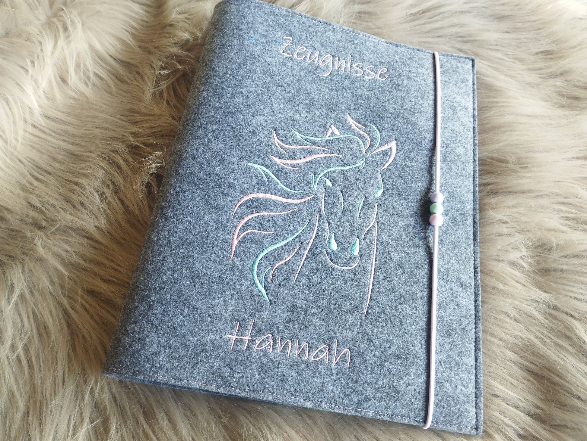 Zeugnismappe Zeugnisse Wunschnamen Geschenk Erinnerung Einschulung Filz Pferd