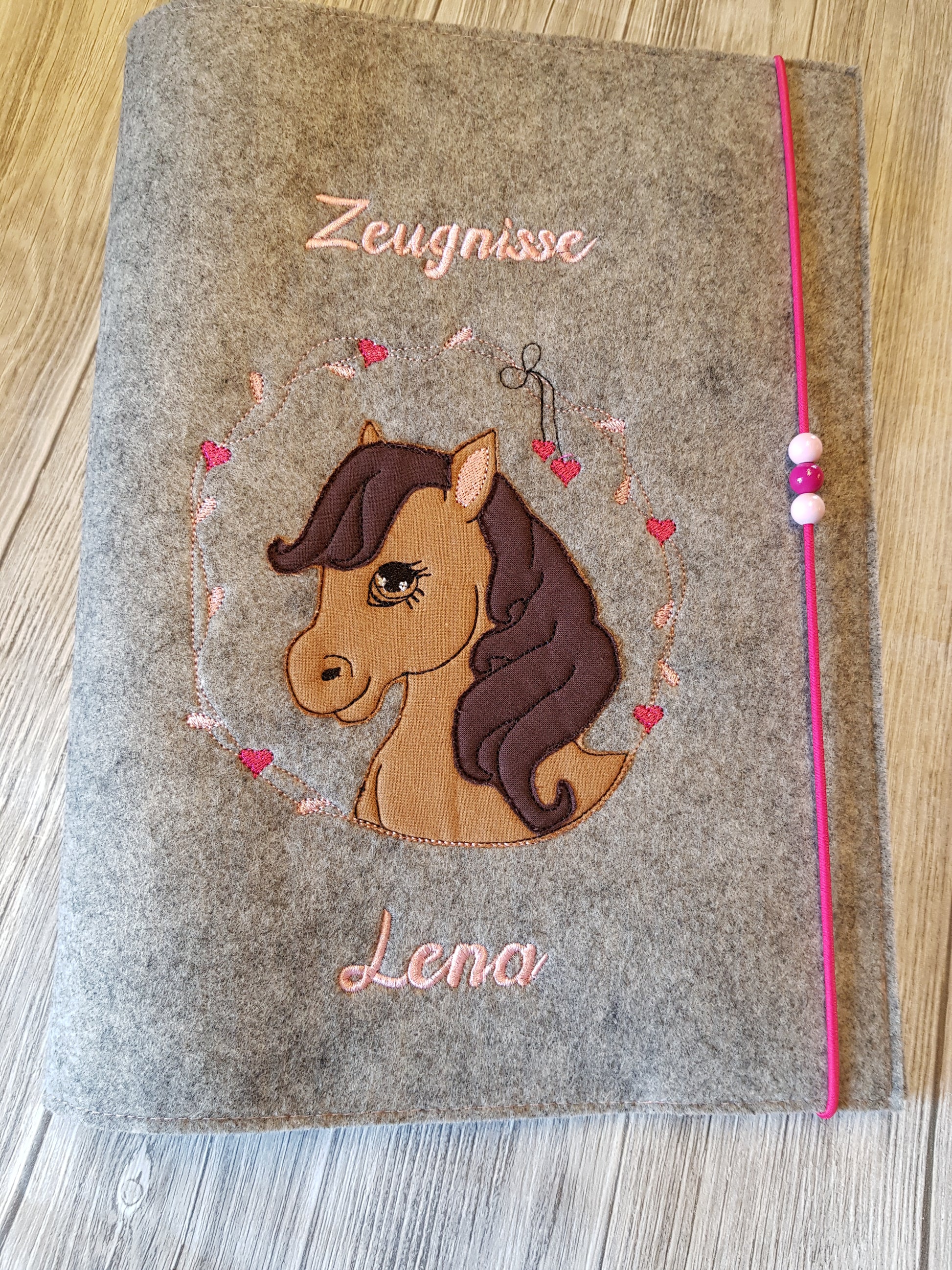 Zeugnismappe Zeugnisse Wunschnamen Geschenk Erinnerung Einschulung Pferd Filz
